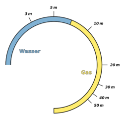 In Meereshöhe ist die Luftsäule im Röhrchen in 10 m Tiefe gemäß dem Gesetz von Boyle-Mariotte auf die Hälfte zusammengedrückt, in 20 m auf ein Drittel, usw. Die Skala ist also im flachen Bereich weit gespreizt. Umso tiefer man sich unter Wasser befindet, desto enger wird sie, was die Ungenauigkeit bei der Ablesung erhöht.